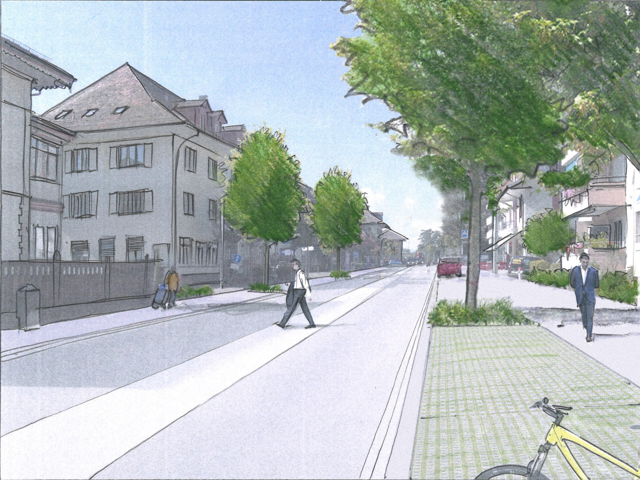 Die Bernstrasse behält ihren Charakter als gradlinige Verbindungstrasse, hingegen ermöglicht der geplante Mehrzweckmittelstreifen gutes Queren der Strasse. Zudem schafft es eine bessere Verkehrssicherheit für die Fahrradfahrenden. Die Längsparkierungen sind im östlichen Bereich möglich.